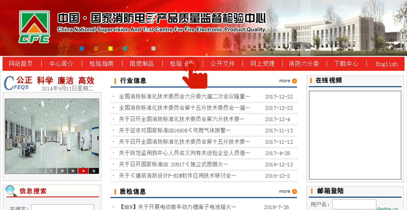 Login ke China * Pusat Pengawasan dan Pengawasan Kualitas Produk Kebakaran Kebakaran Nasional (www.efire.cn)