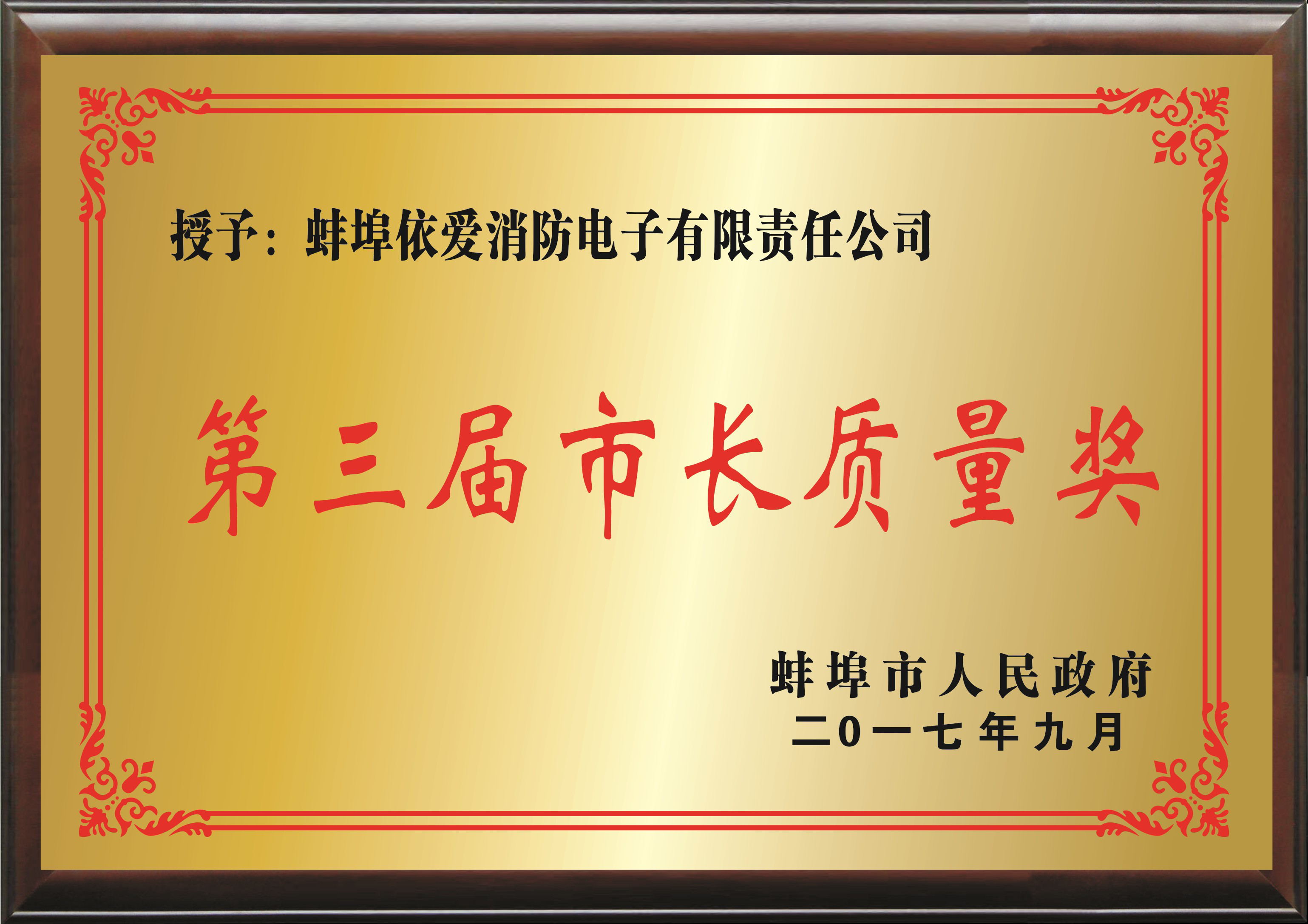 依愛消防榮獲蚌埠市長質(zhì)量獎