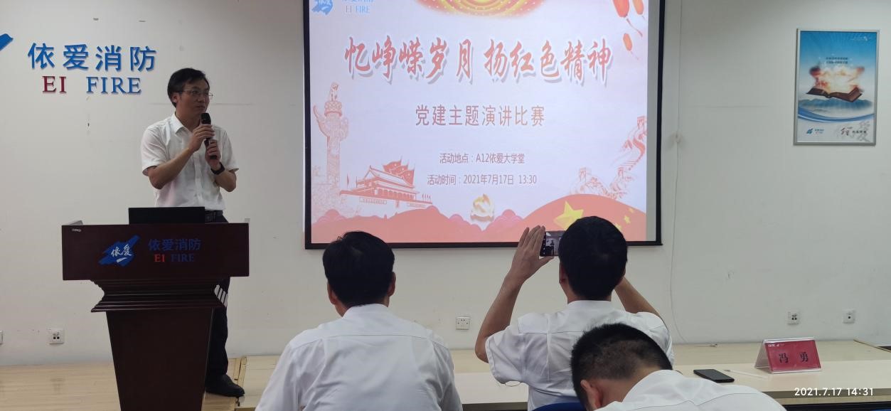 為慶祝中國共產黨建黨100周年,號召員工繼承和發(fā)揚革命前輩不怕苦不怕累的奉獻精神,并將其應用于研發(fā)工作中,2021年7月17日,消防公司研發(fā)部在A12依愛大學堂成功舉辦“憶崢嶸歲月,揚紅色精神”黨建主題演講比賽,研發(fā)部全員參與活動,公司總工程師馮勇、質安部部長孫峻嶺、人力資源部部長范旭東、綜合管理部高級專務李鵬、研發(fā)部副部長張廣標擔任評委。