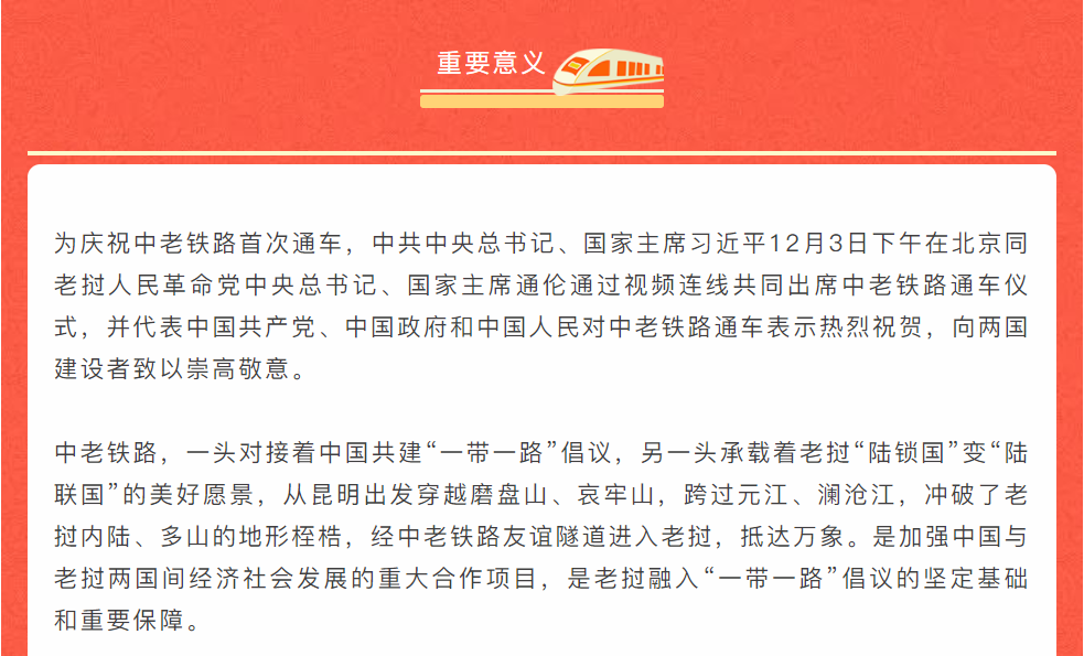 熱烈慶?!耙粠б宦贰毕笳餍皂?xiàng)目—中老鐵路全線通車(chē)!
