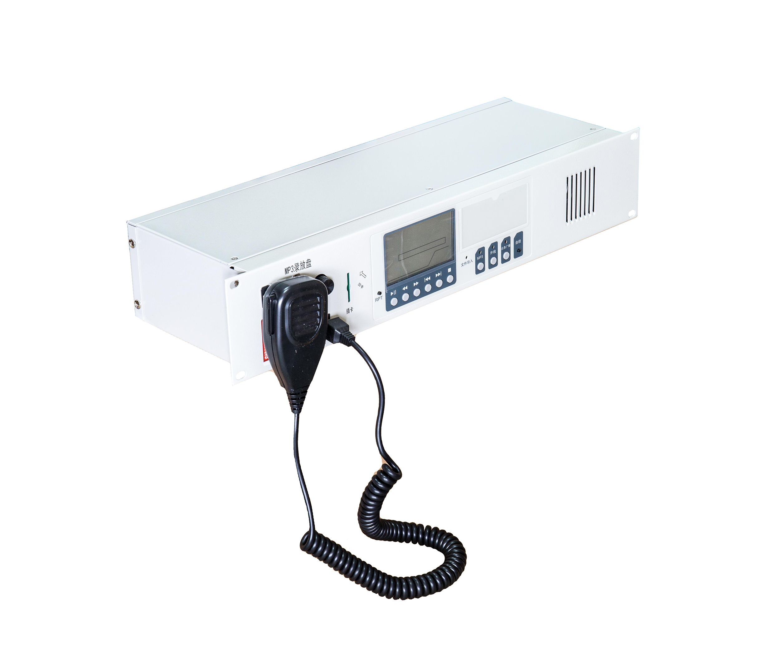 具有應(yīng)急廣播、話筒、MP3、外線四種播音方式。四種音源可獨立開關(guān)。